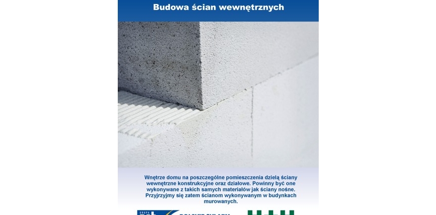 Ściany nośne wewnętrzne są wznoszone z takich samych materiałów, jak mury zewnętrzne. Pisaliśmy na ten temat szerzej w folderze pt. Technologia budowy domu a właściwości cieplne ścian. Dlatego nie powtarzamy tutaj opisu poszczególnych materiałów murowych.
