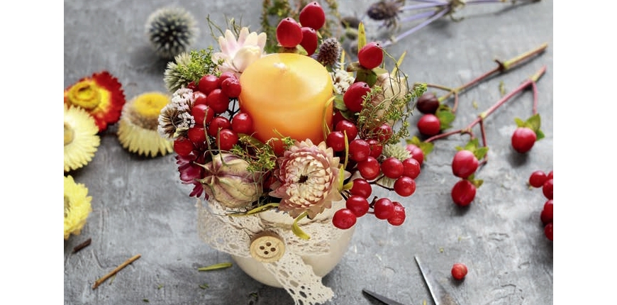 Migotliwe świece, pełne czerwieni i pomarańczu owoce, suszone kwiaty, trawy i liście - to dekoracje oddające ten (w przeciwieństwie do ponurej słoty) urokliwy klimat jesieni. Warto wypełniać wnętrze ciepłymi ozdobami, szczególnie, kiedy z łatwością możemy wykonać je sami, a wiele atrakcyjnych darów dostarczy nam bezpłatnie ogród, park lub las.