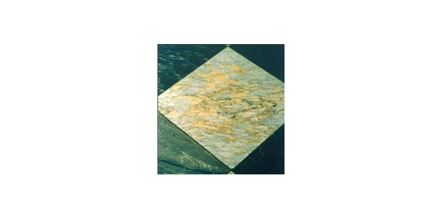 - zanieczyszczeniami eksploatacyjnymi (np. czerwone wino rozlane na jasnym marmurze, niewłaściwe środki lub metoda czyszczenia - fot. 4),